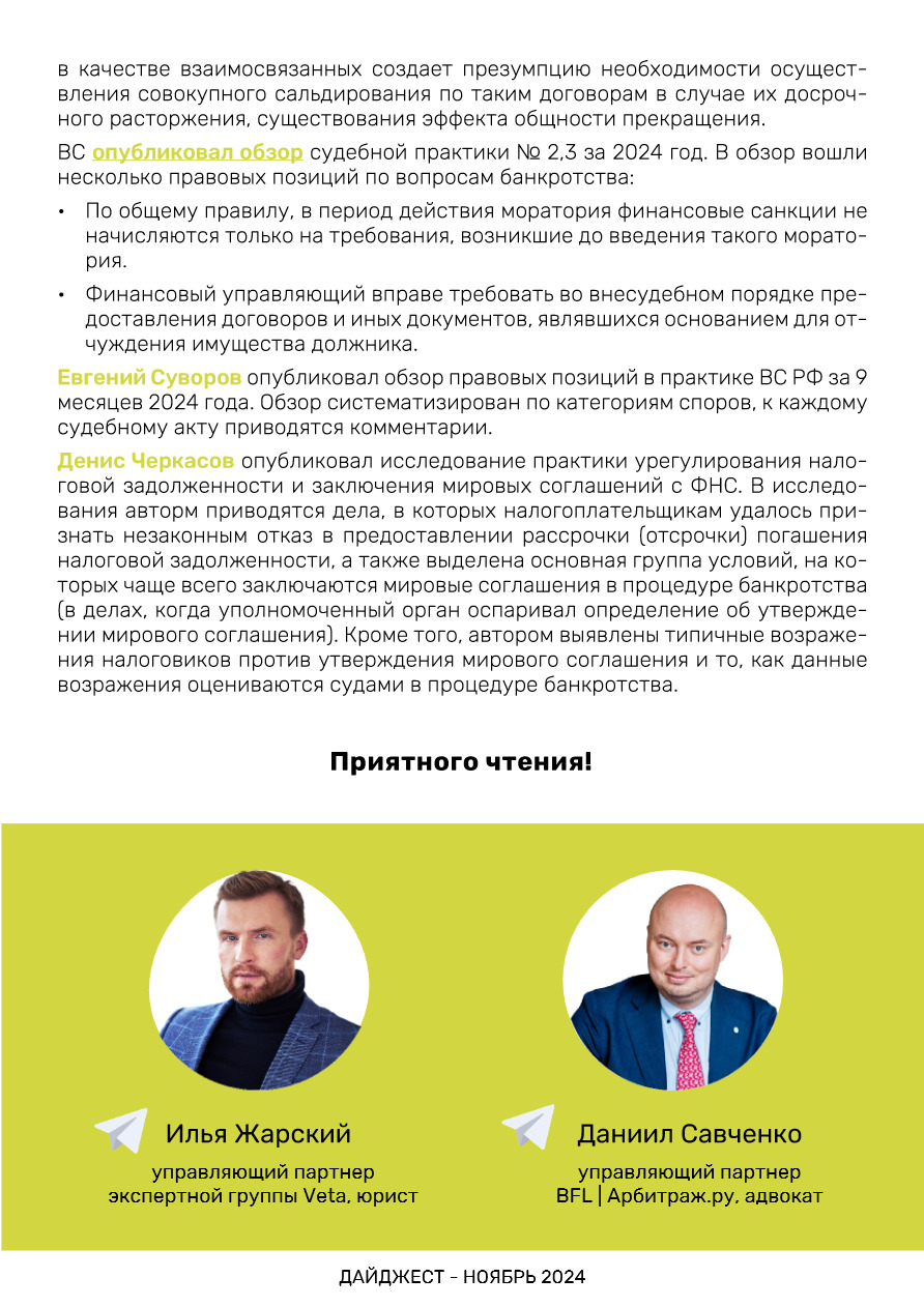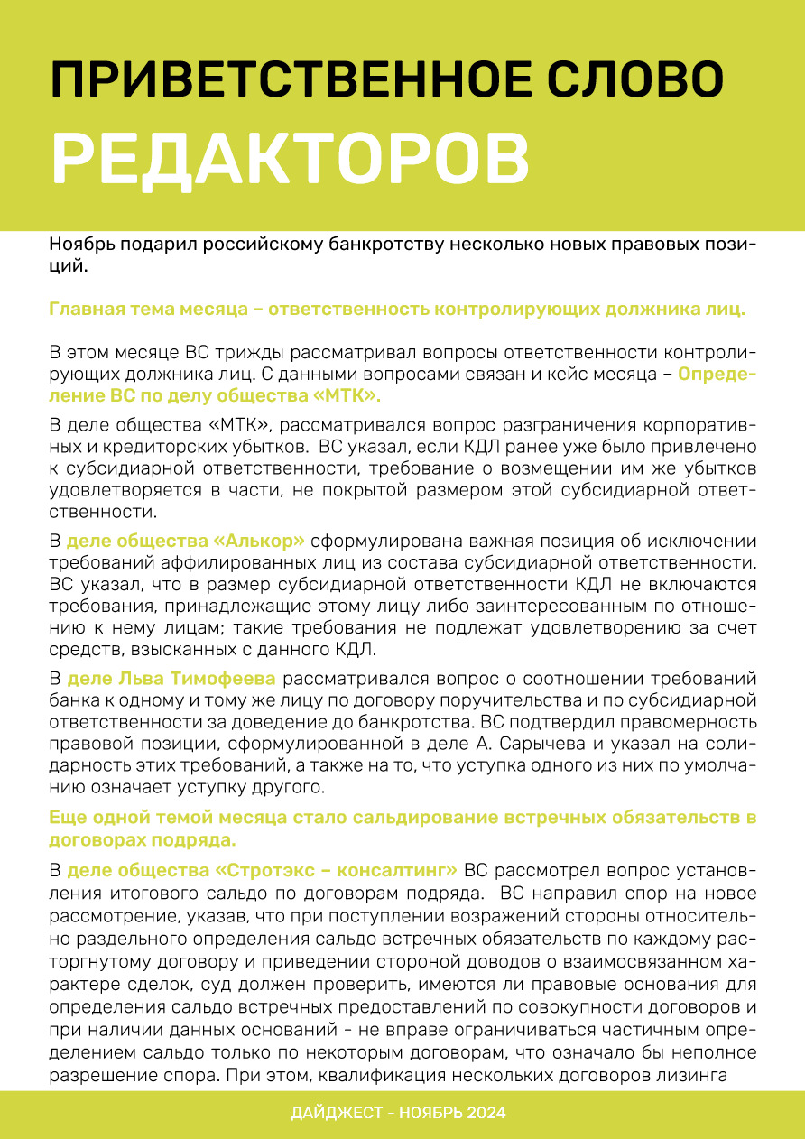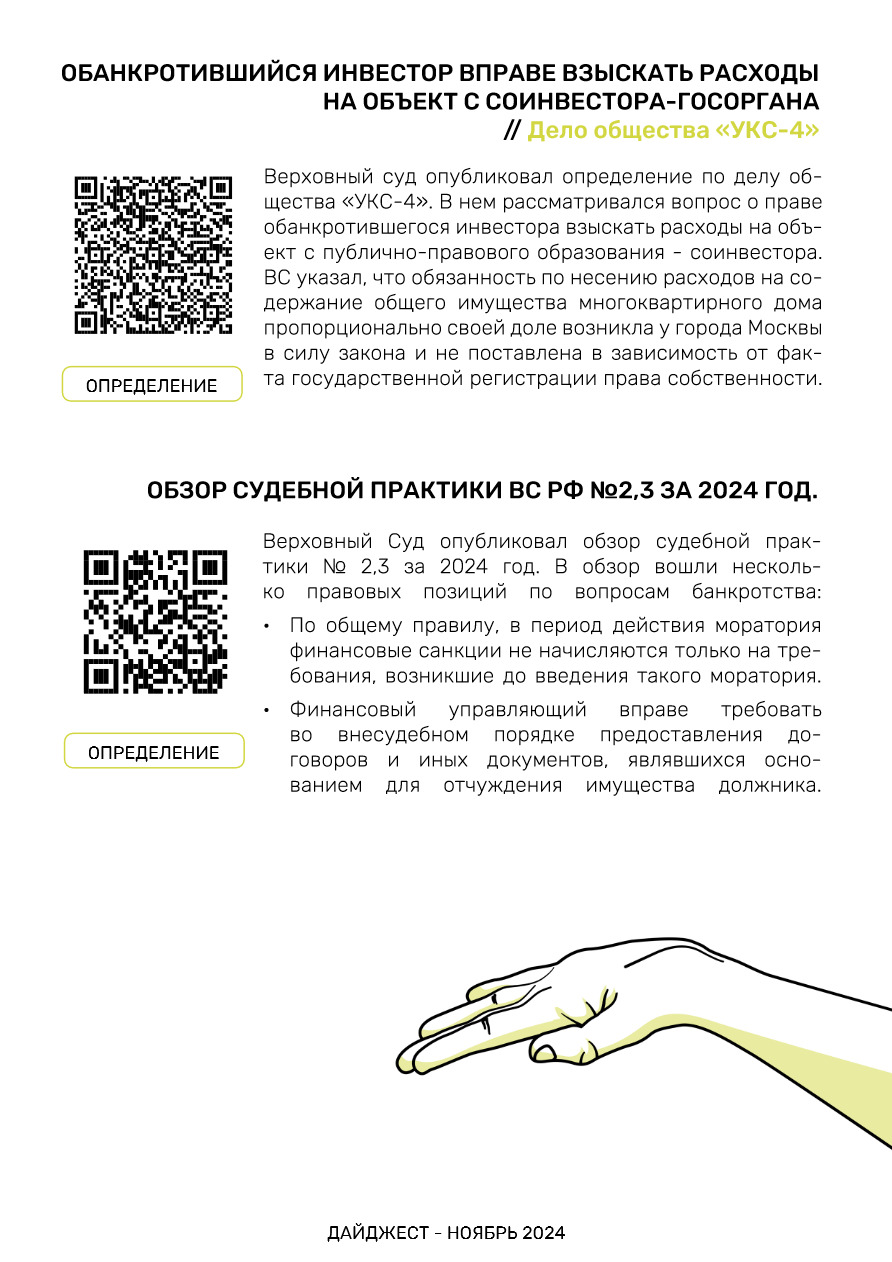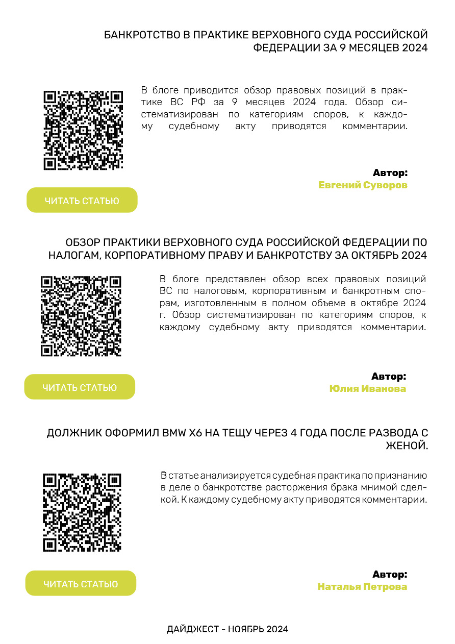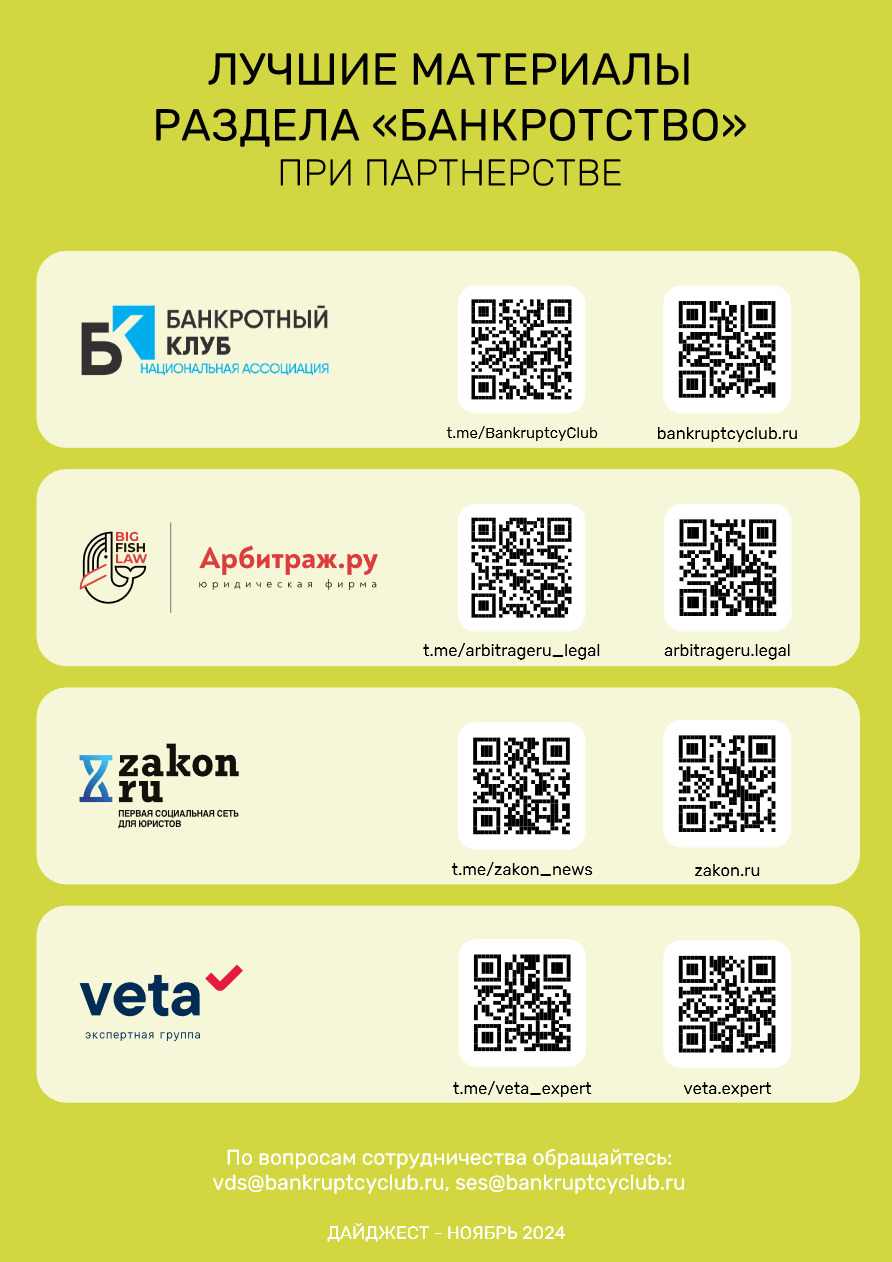 - Банкротство в практике Верховного Суда Российской Федерации за 9 месяцев 2024.