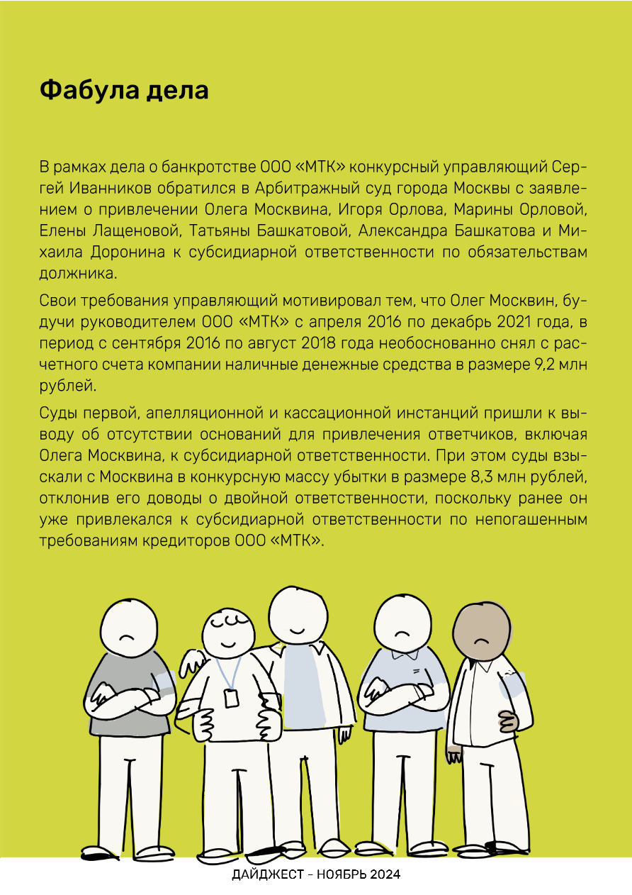 В этом месяце ВС трижды рассматривал вопросы ответственности контролирующих должника лиц. С данными вопросами связан и кейс месяца – Определение ВС по делу общества «МТК».