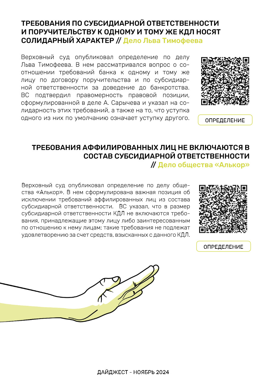 - Требования аффилированных лиц не включаются в состав субсидиарной ответственности // Дело общества «Алькор».