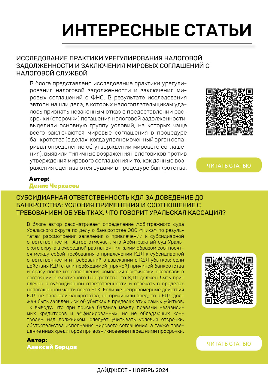 - Обзор практики Верховного Суда Российской Федерации по налогам, корпоративному праву и банкротству за октябрь 2024 года.