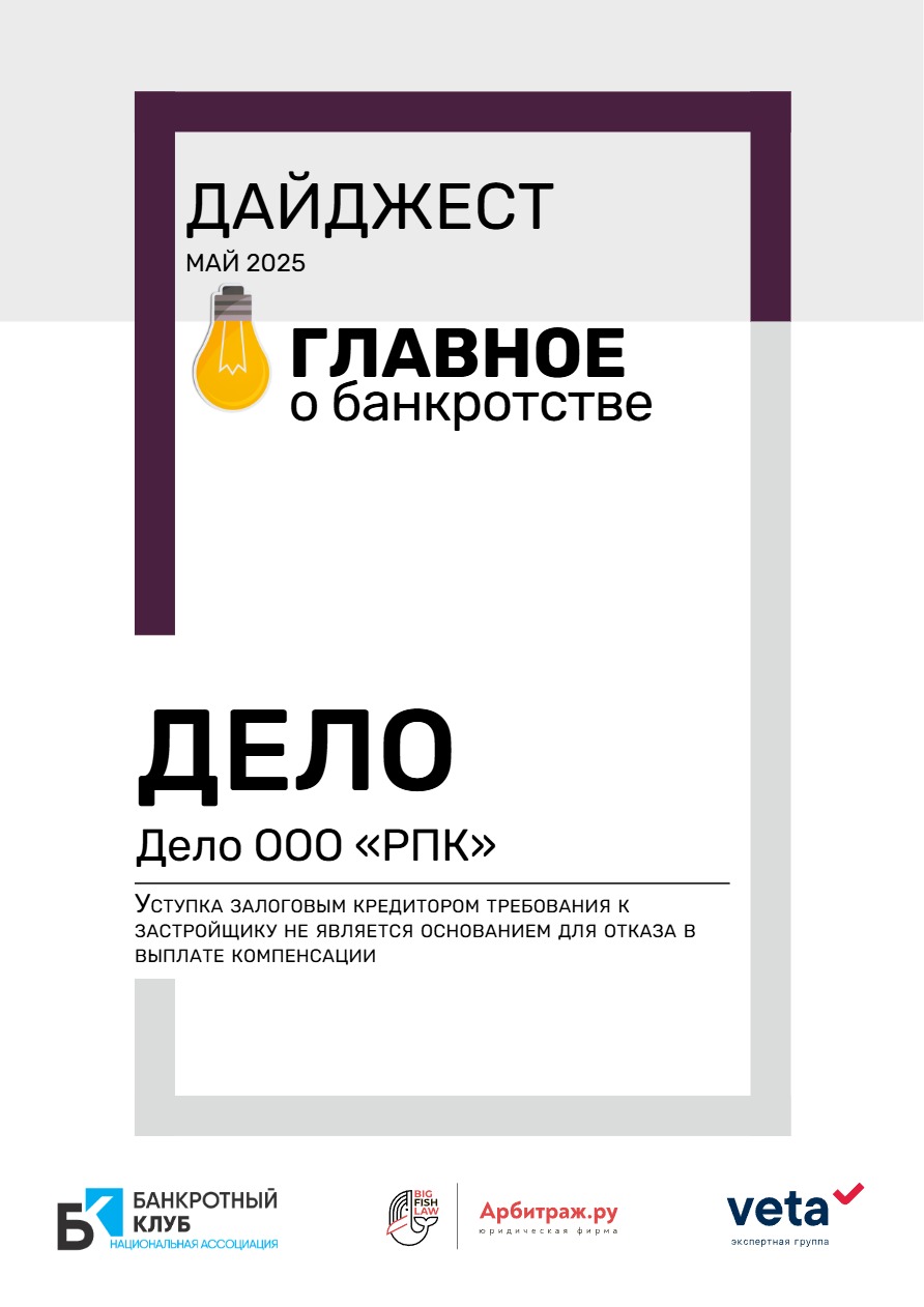 I. Уступка залоговым кредитором требования к застройщику не является основанием для отказа в выплате компенсации // Кейс месяца по банкротству — Дело ООО «РПК»