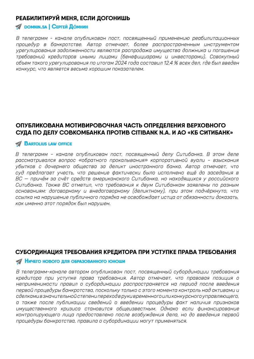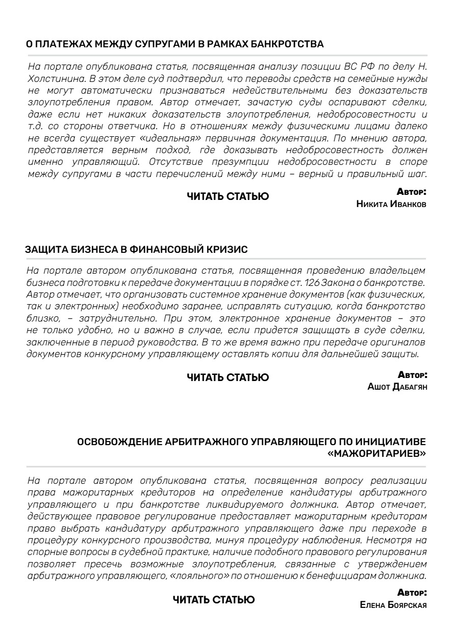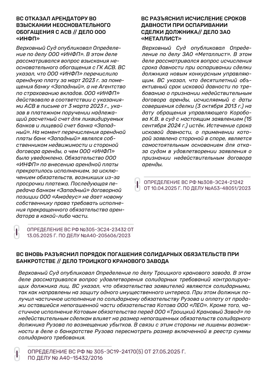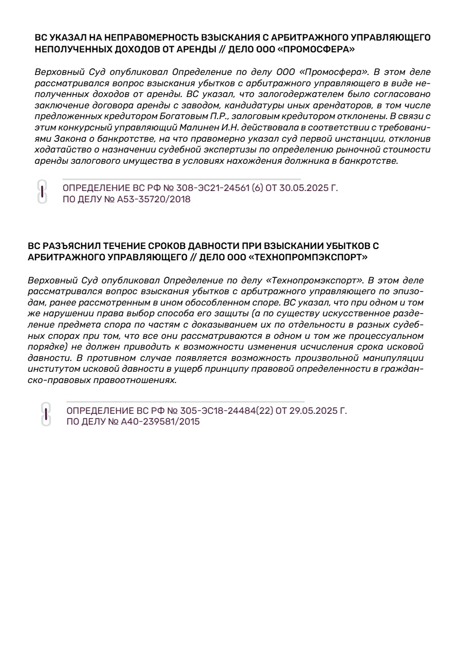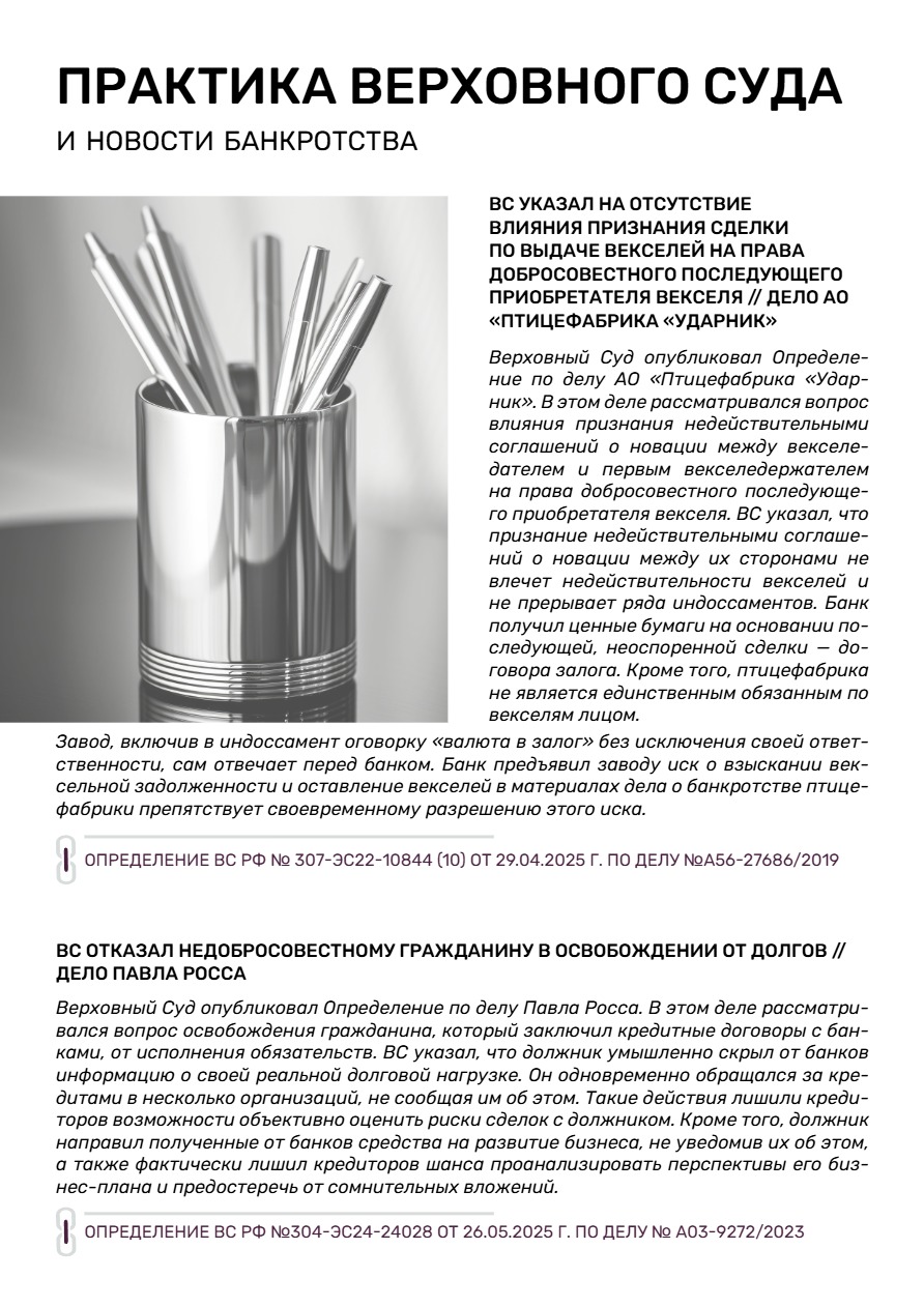 II.Новости банкротства и практика ВС
