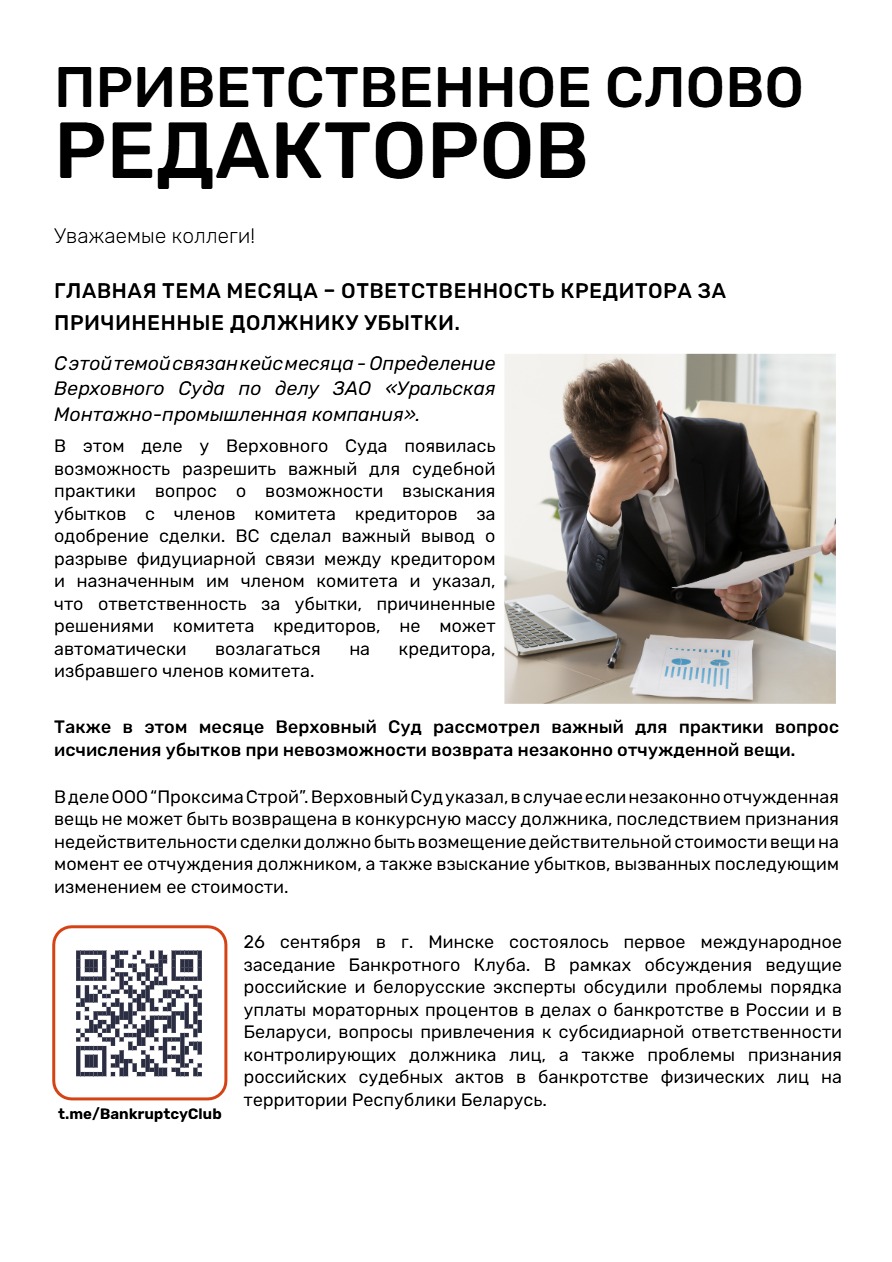Главная тема месяца – ответственность кредитора за причиненные должнику убытки.