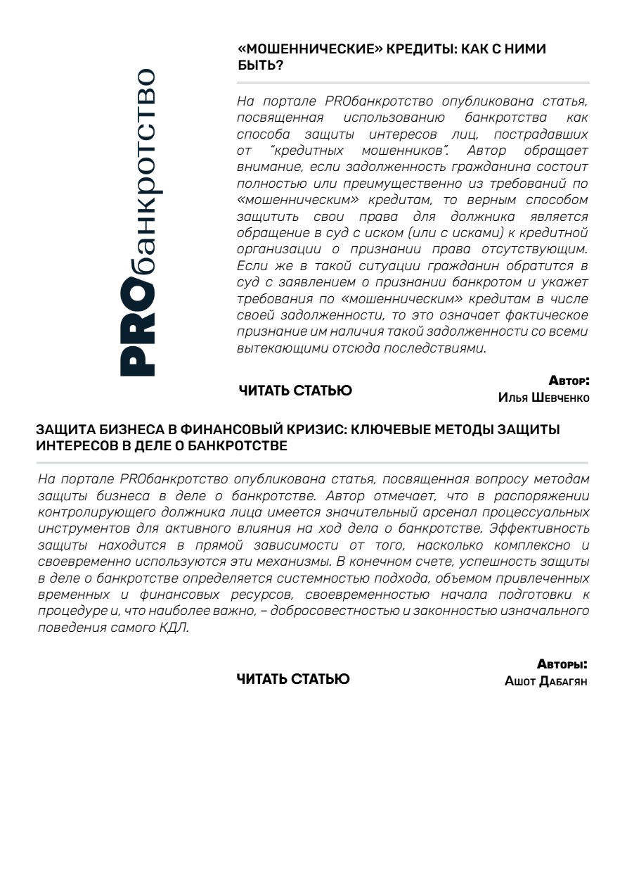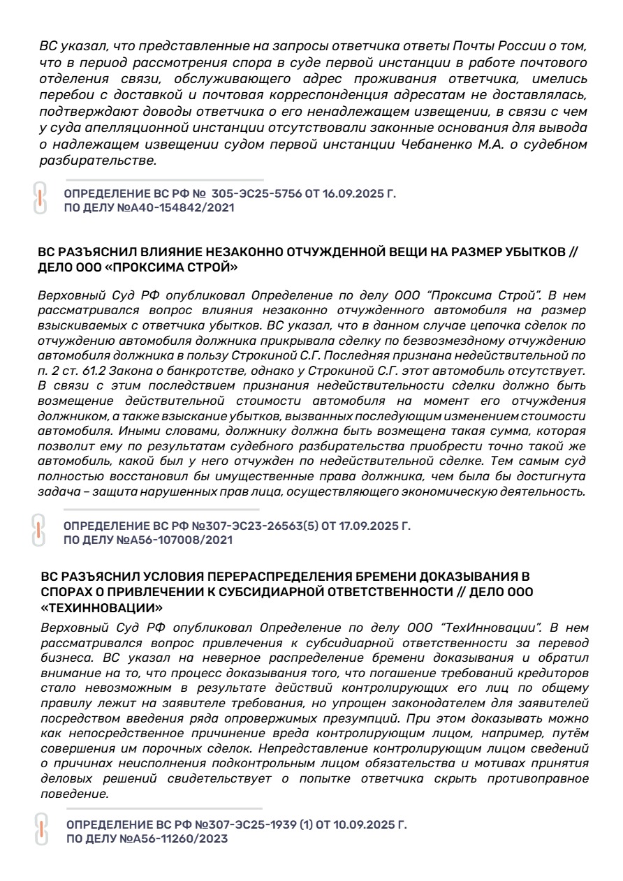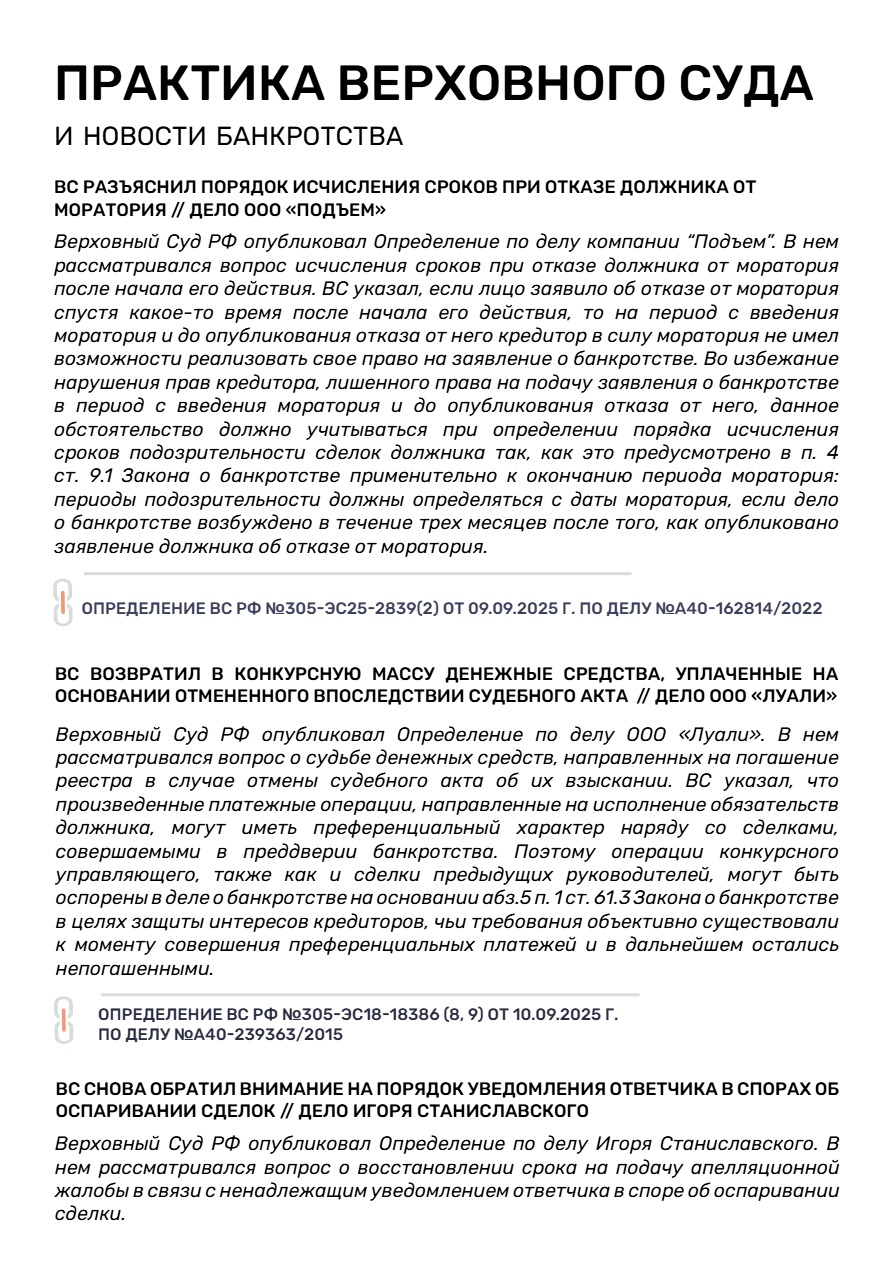 II.Новости банкротства и практика ВС