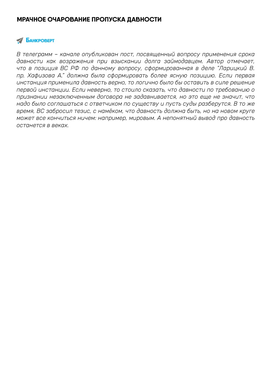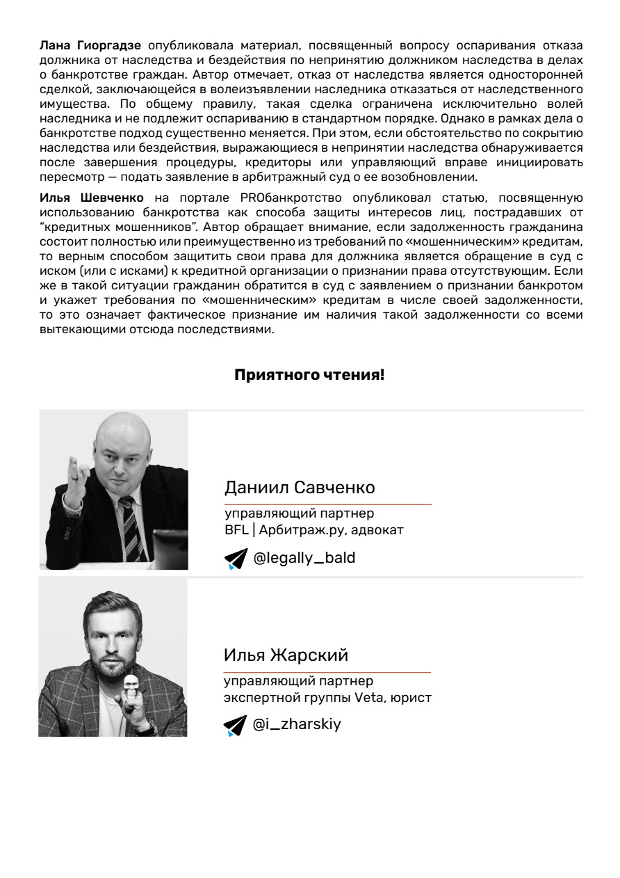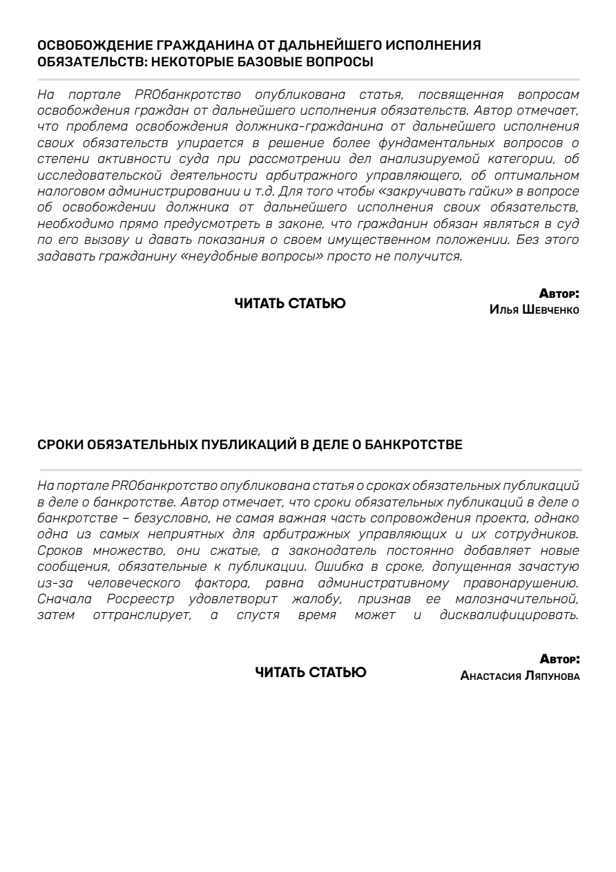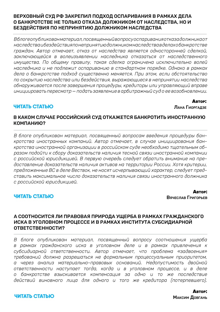 II.Новости банкротства и практика ВС