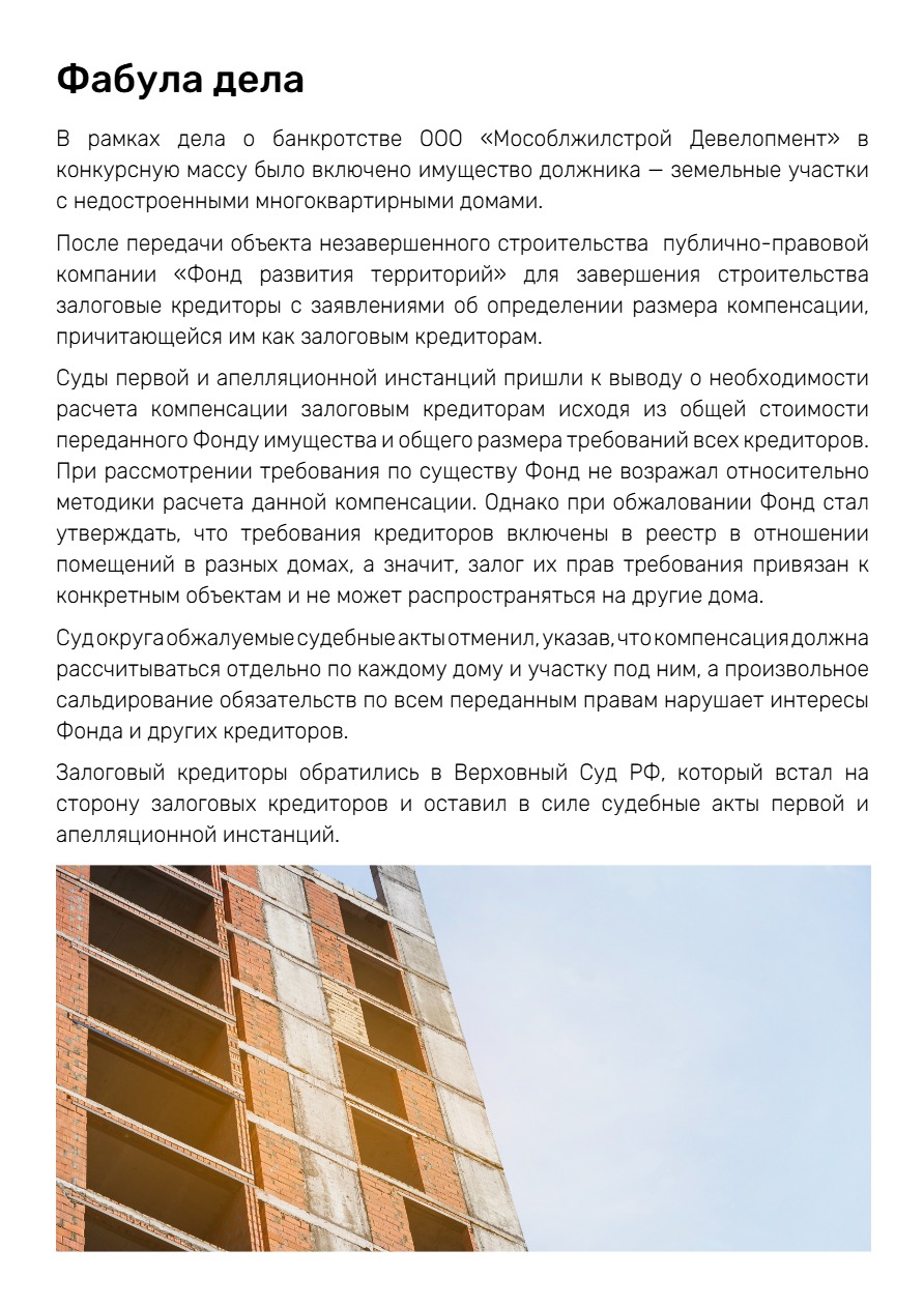 С этой темой связан кейс месяца — Определение Верховного Суда по делу ООО “Мособлжилстрой Девелопмент”