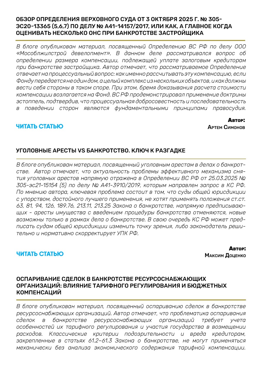 • Обзор определения Верховного Суда от 3 октября 2025 г. № 305-ЭС20-13365 (5,6,7) по делу № А41-14157/2017, или как, а главное когда оценивать несколько ОНС при банкротстве застройщика