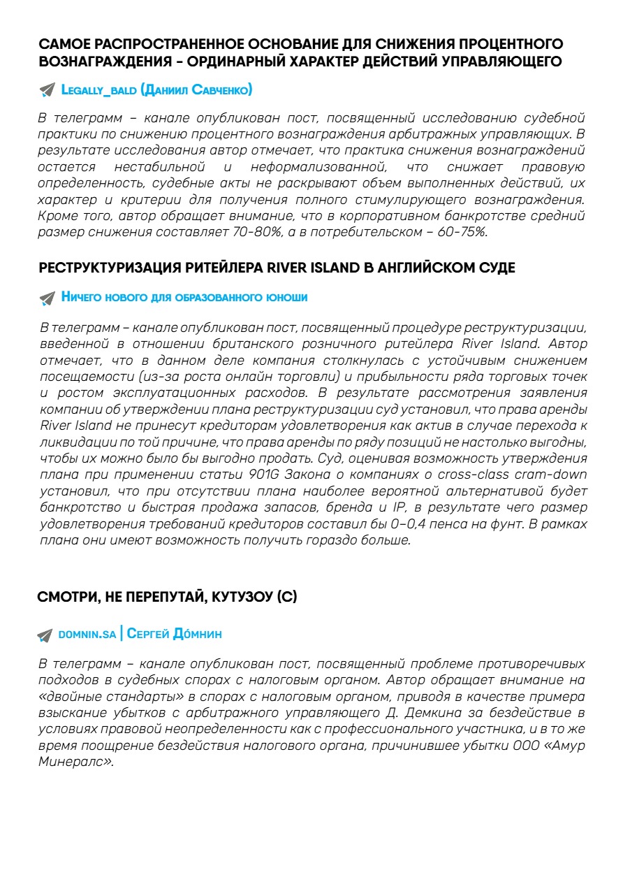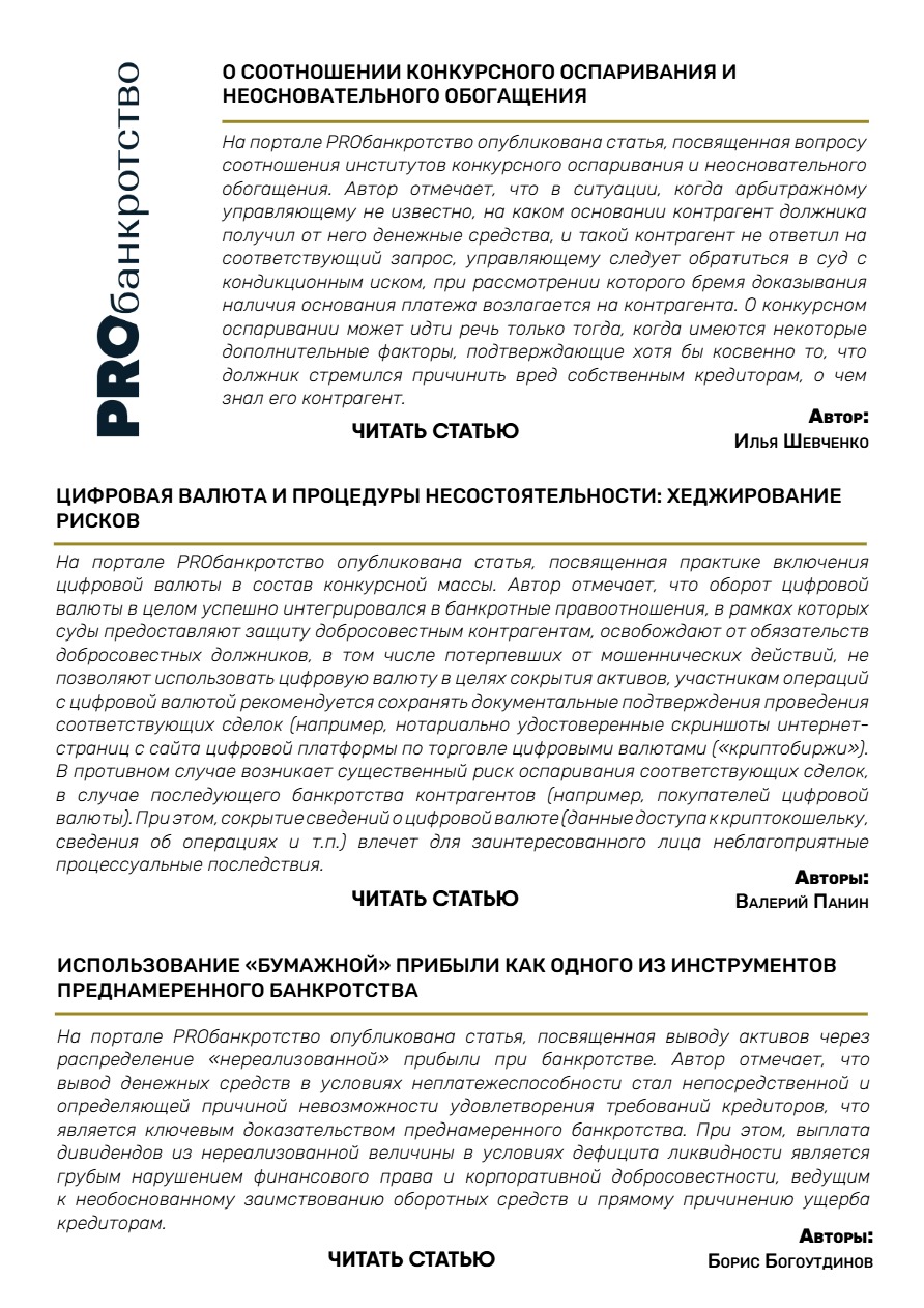 Также в этом месяце Верховный Суд рассмотрел важный для практики вопрос взыскания убытков с арбитражного управляющего в связи с неуплатой налога на прибыль в период правовой неопределенности.