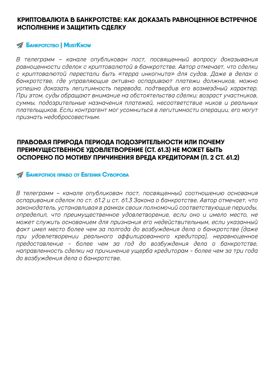 • Цифровая валюта и процедуры несостоятельности: хеджирование рисков