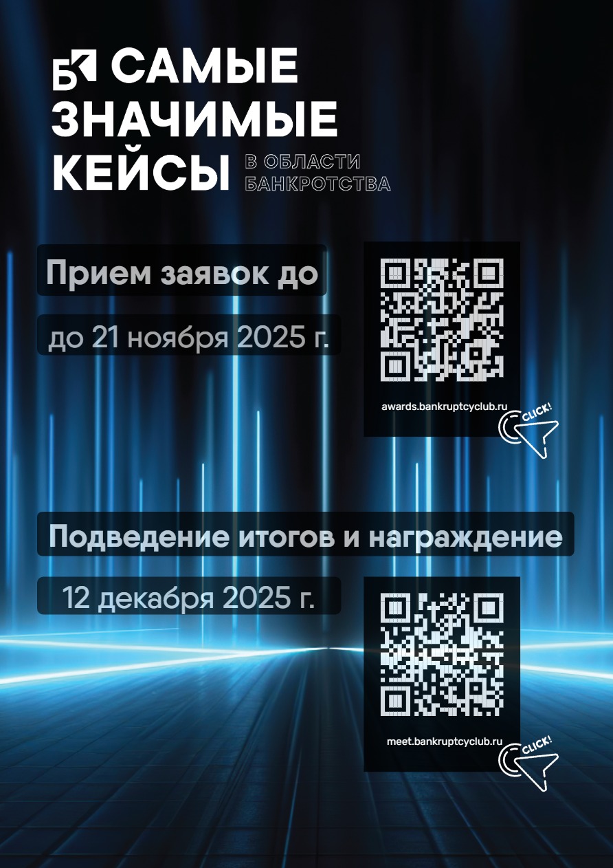 Национальная ассоциация «Банкротный Клуб» приглашает принять участие в премии «Самые значимые кейсы в области банкротства», благодаря которой мы постараемся выявить лучшие кейсы в отрасли.