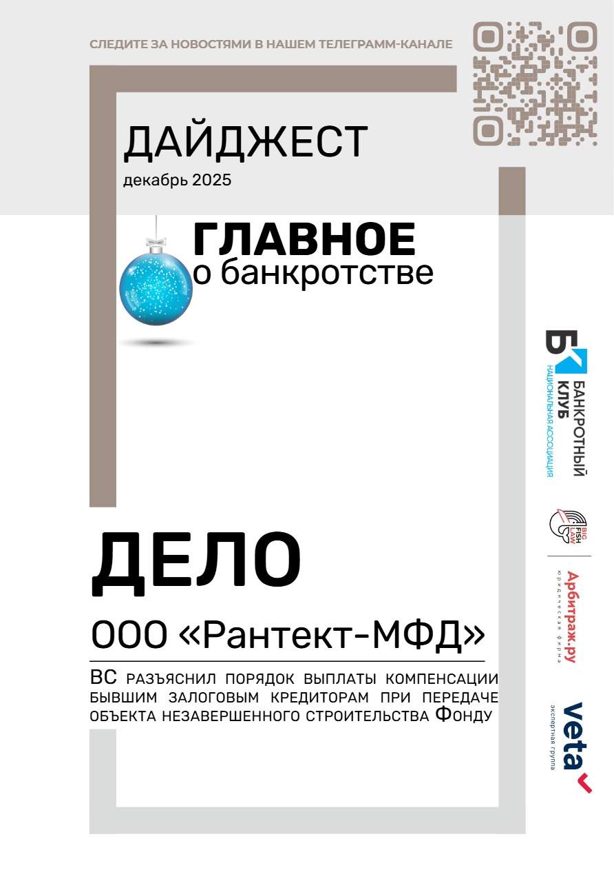 Еще одна тема месяца — банкротство застройщиков. С ней связан и кейс месяца — Определение Верховного Суда по делу ООО «Рантект-МФД».