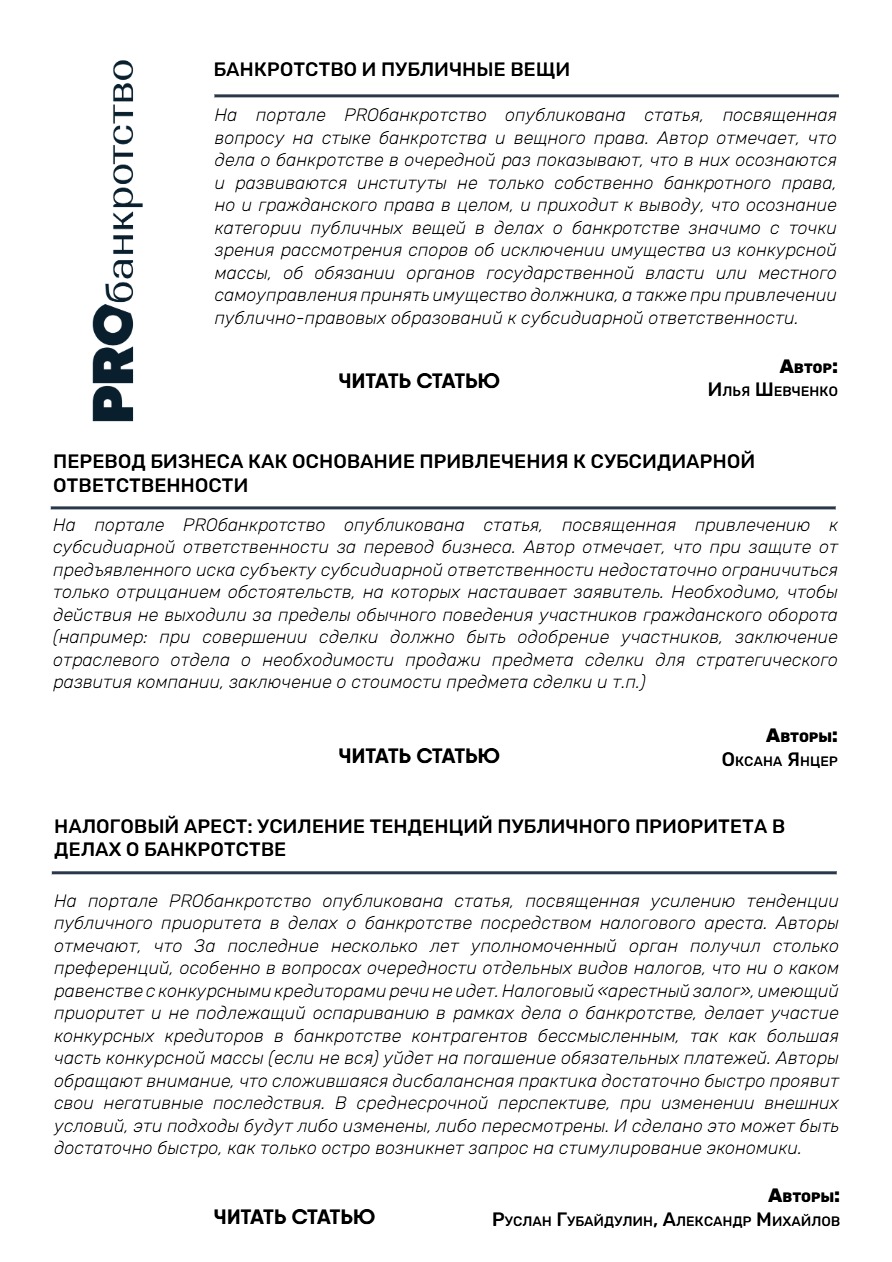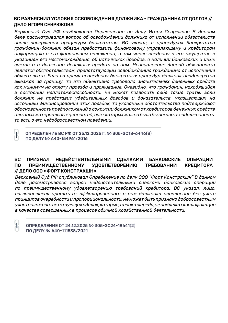 II.Новости банкротства и практика ВС