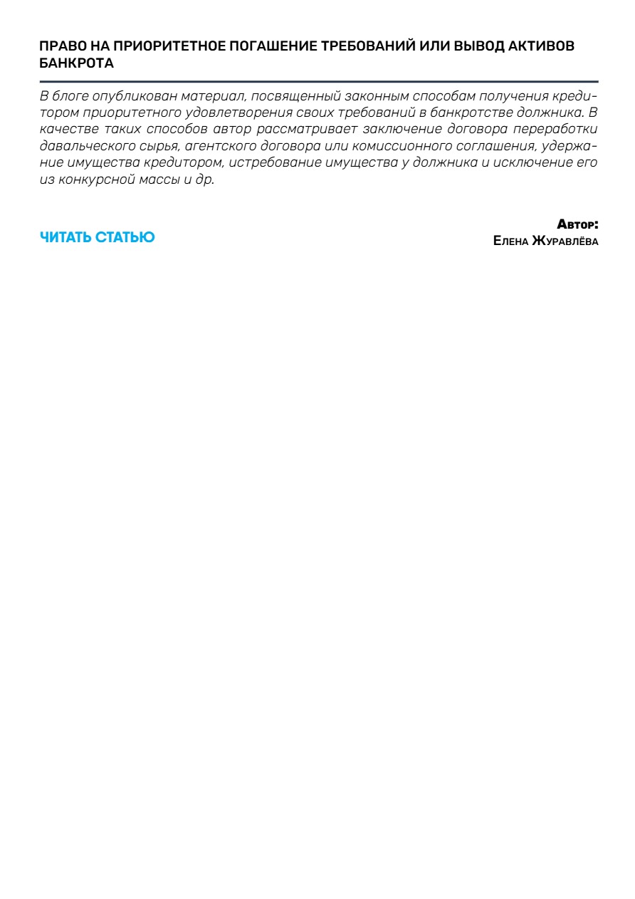 Автор – Юлий Тай - Право на приоритетное погашение требований или вывод активов банкрота